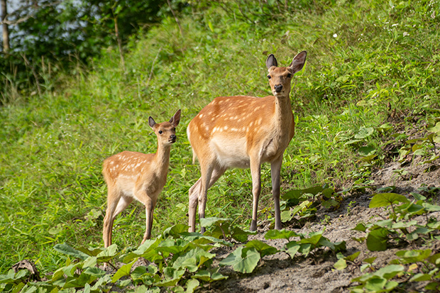 木立の間から見えてしまうので車が通るとしゃがんでやり過ごしました。