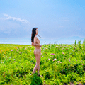 オホーツク海、サロマ湖、そして原生花園の花々を背景に撮影しました。