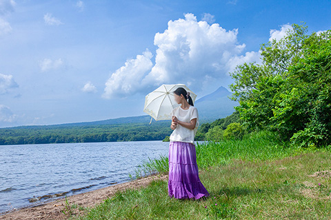この入り江は大沼公園線という周回道路からほんの10Mほどの場所です。50M先の次の入り江にはキャンプ場があって大勢の観光客でにぎわっていました。