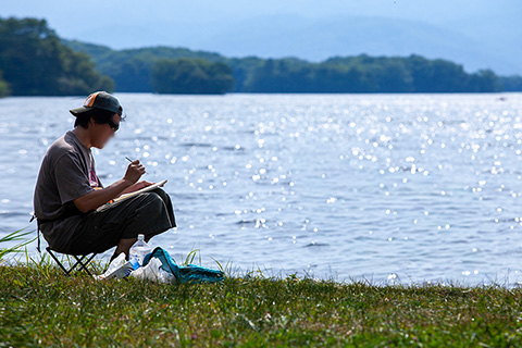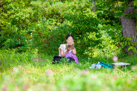 ボクが写生するのを待つ間、サティはたいてい本を読んでいます。放っておくと際限なく読書を続けます。このときの道南の旅には6冊の文庫本を持って行きましたが、途中で読み切ってしまって札幌で買い足していました。